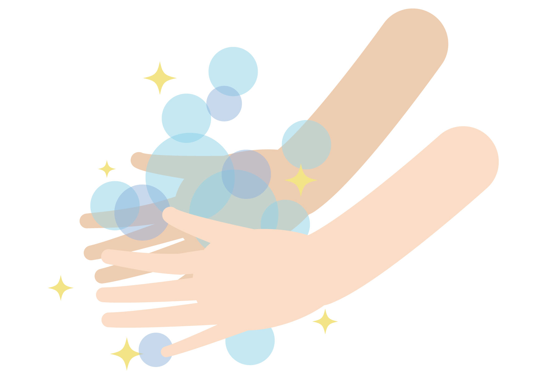 感染防止のためせっけんでバイキンや汚れを落とし、水でしっかり洗っている人(手元)のイラストです。