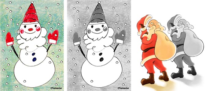 この時期は、クリスマスの白黒イラストが良く利用されています。