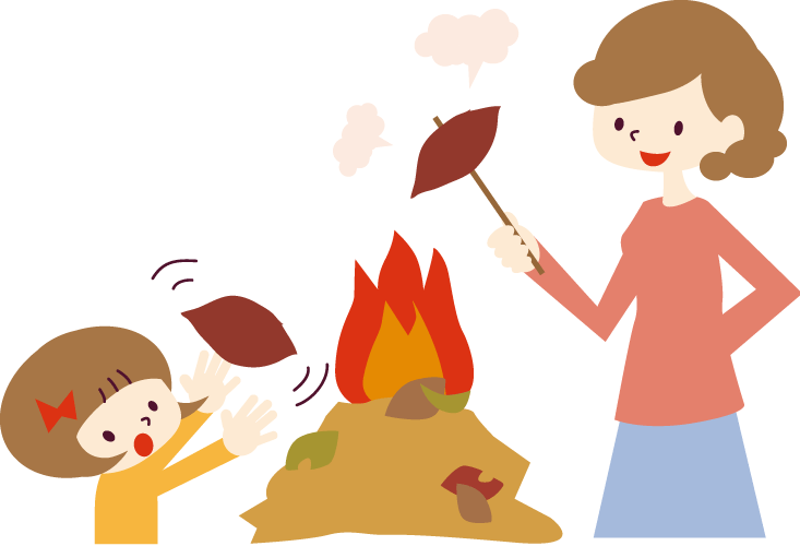 - 落ち葉で焼き芋のイラスト | かわいいフリー素材が無料のイラストレイン
