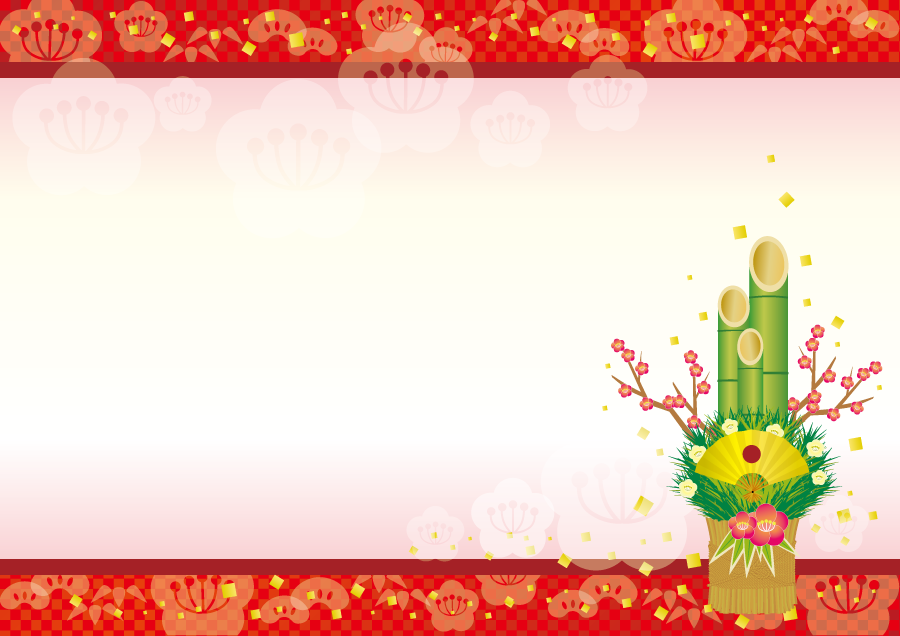 - フリーイラスト 門松と扇子と梅の花のお正月の飾り枠