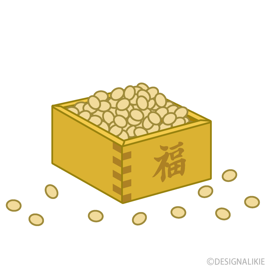 節分の豆まきにつかう大豆が入った枡(マス)のイラスト素材です。